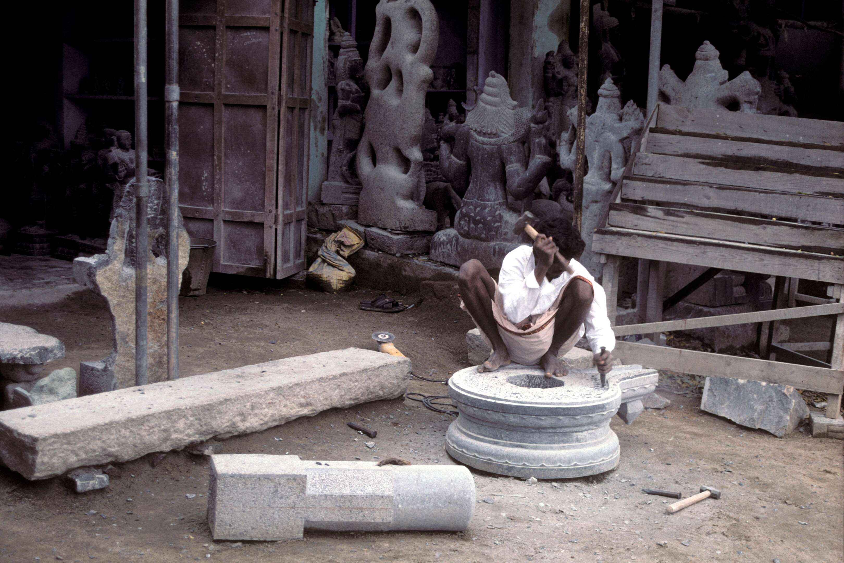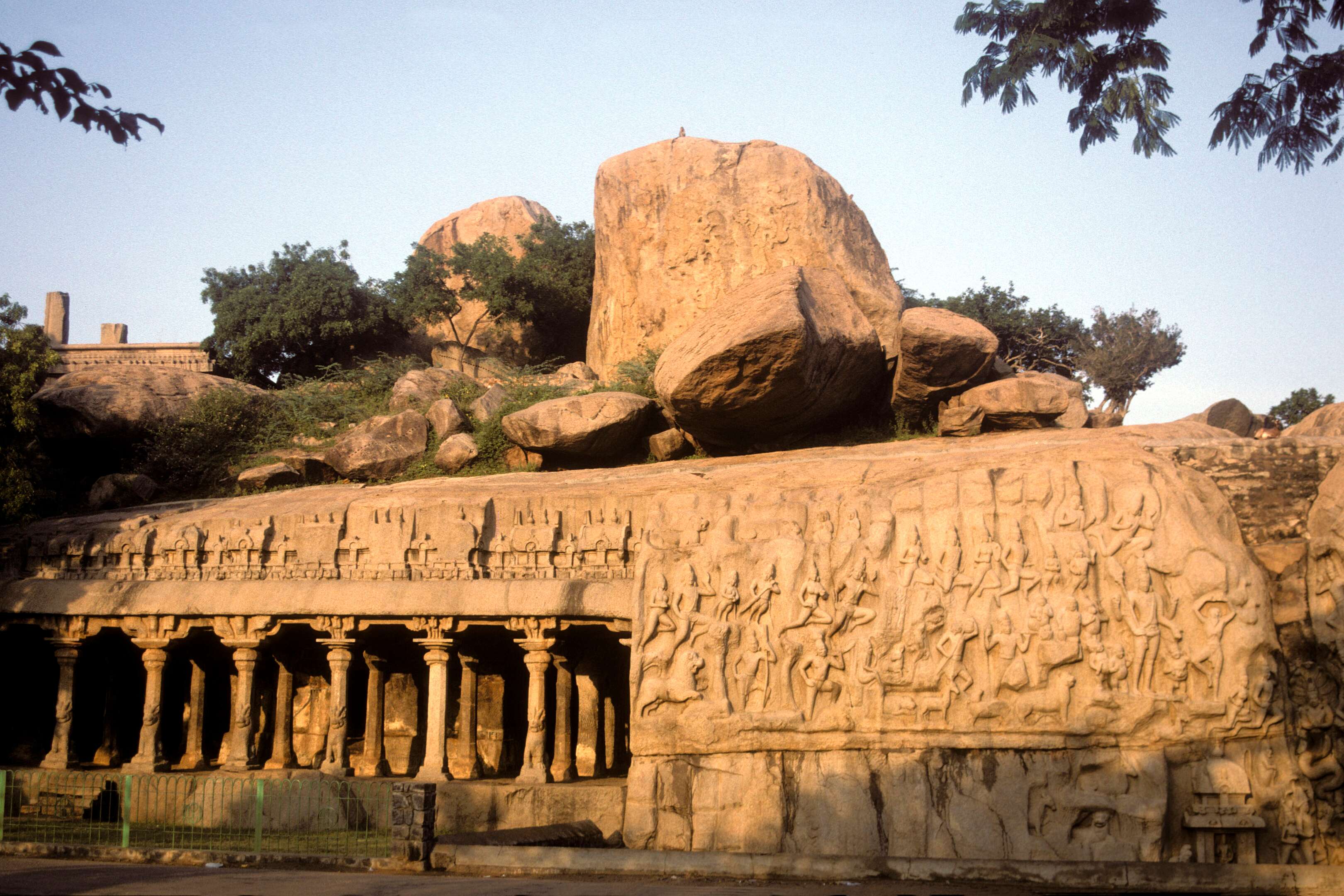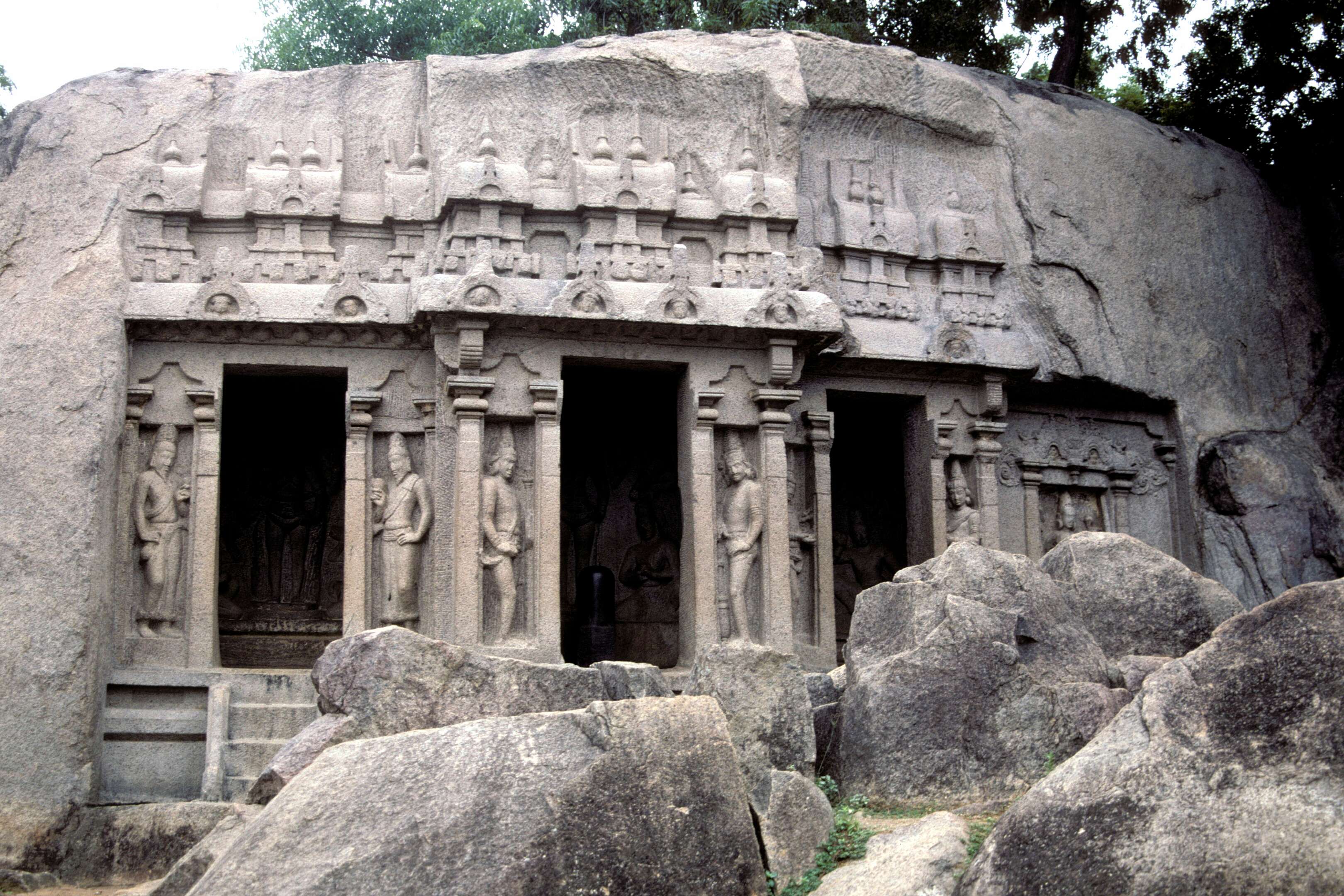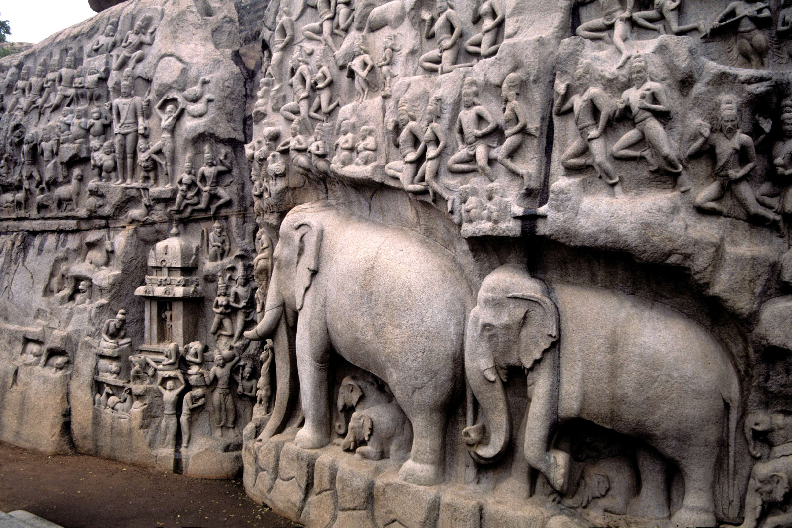 Nearby Kanchipuram, one of India’s ancient temple cities, was once the capital of the Pallava and Chola dynasties. Known as the “City of a Thousand Temples,” it is revered for its magnificent Kailasanathar and Ekambareswarar temples and its exquisite silk weaving. Further along the Coromandel Coast lies Mahabalipuram (Mamallapuram), a 7th-century Pallava port famed for its rock-cut shrines, shore temple, and intricate bas-reliefs like the “Descent of the Ganges.” These UNESCO-listed monuments reveal the early grandeur of South Indian art.